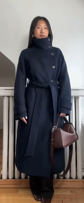 La ceinture permet de marquer la taille, même avec un manteau long. Très flatteur.