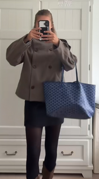 Betonen Sie Ihre Silhouette mit diesem Caban im Military-Stil in moderner, femininer Neuinterpretation. Er ist aus warmem, edlem Stoff gefertigt und verfügt über einen strukturierten Stehkragen, eine zweireihige Knopfleiste und elegante Abschlüsse.