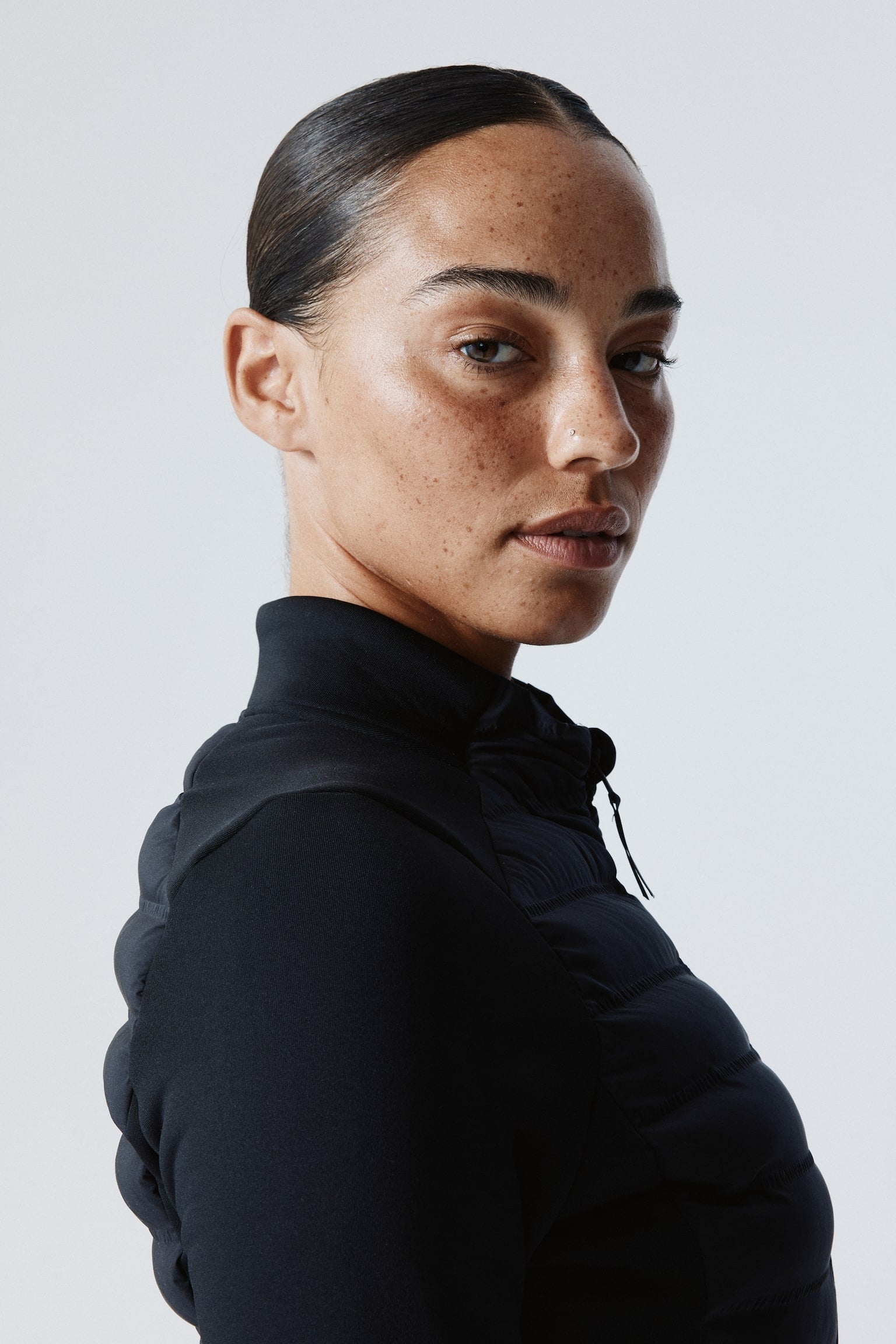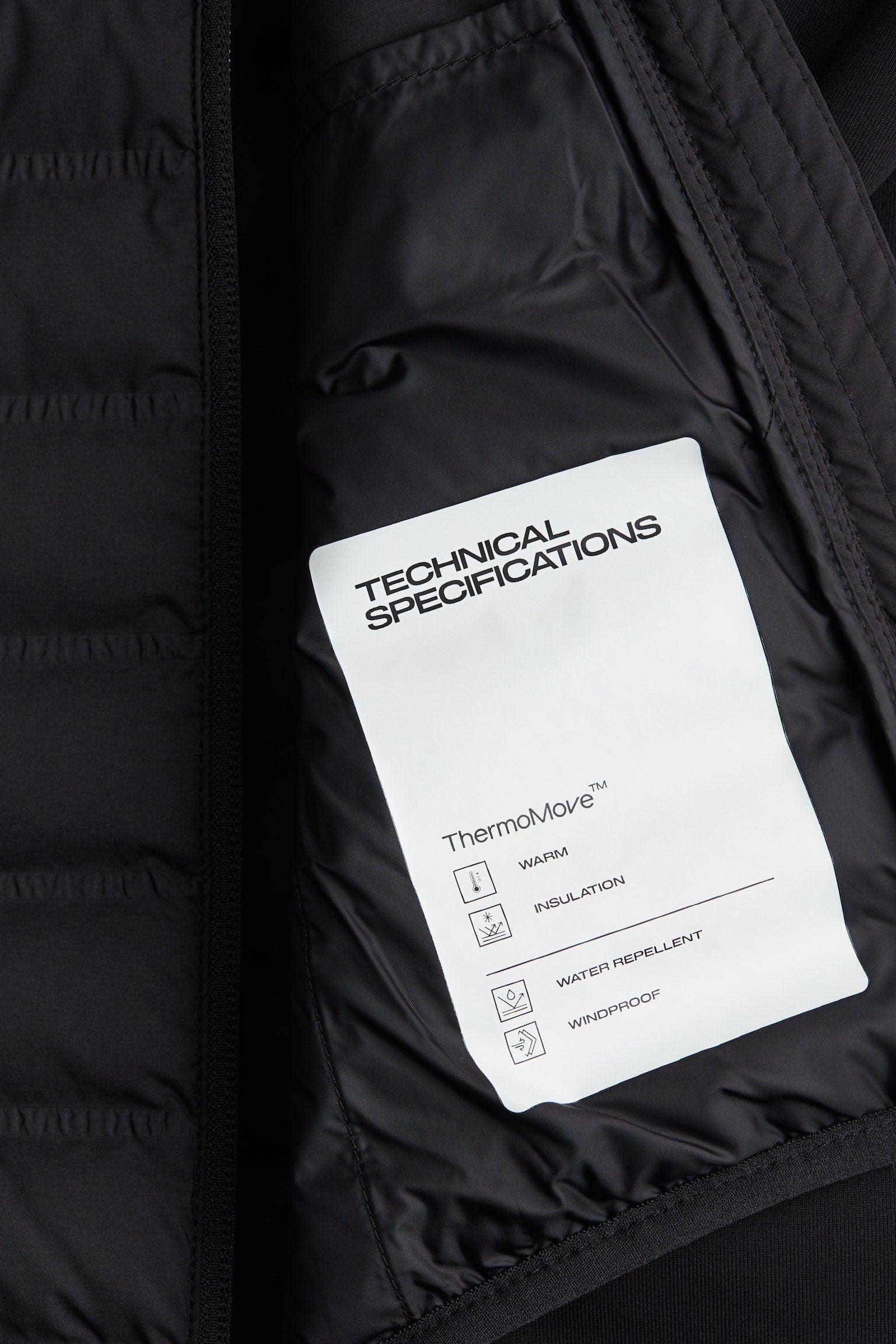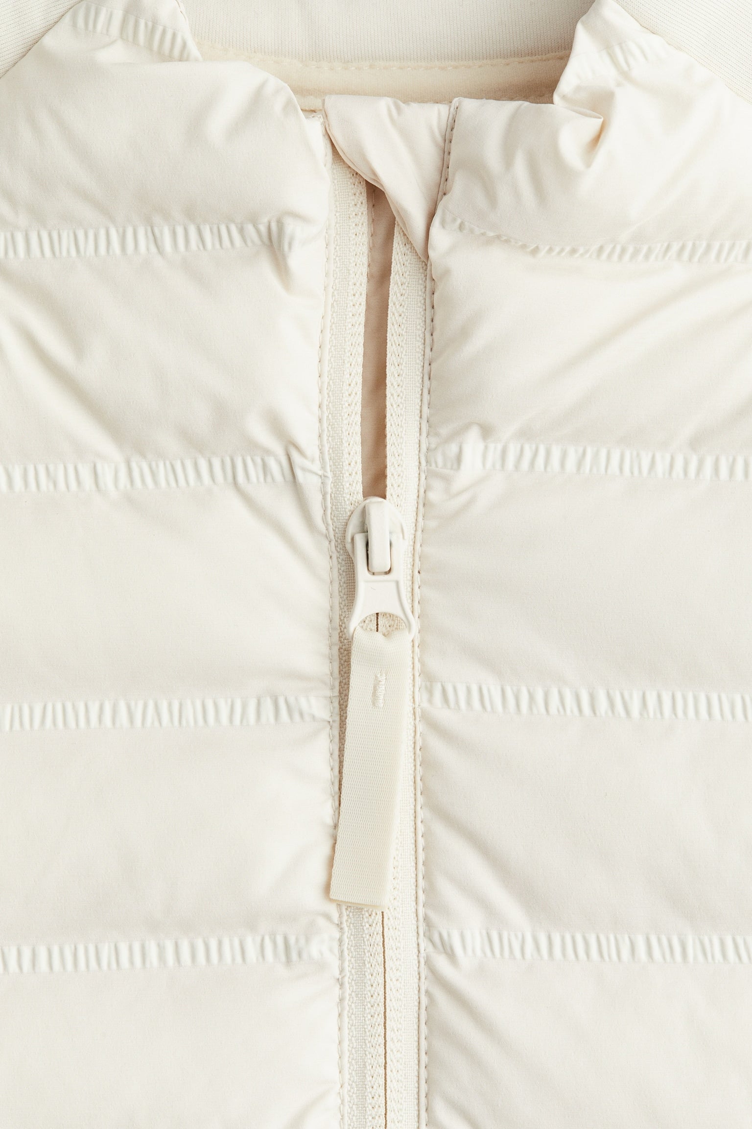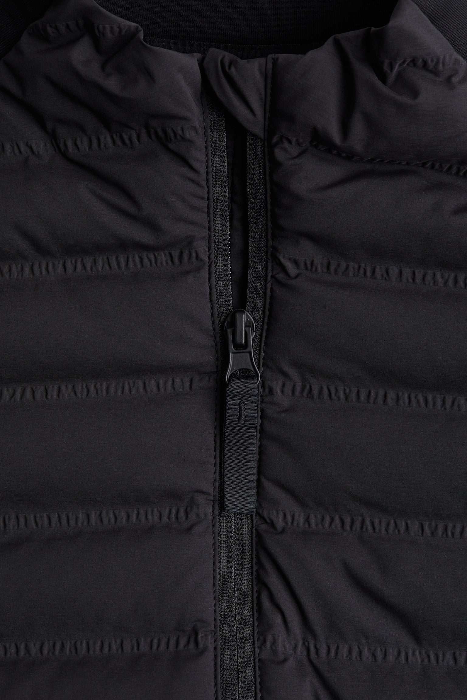 Hybridjacke aus Stretch-Jersey mit gesteppten Einsätzen aus gewebtem Funktionsmaterial, die Sie bei kaltem Wetter warm halten. Standard-Passform. Die Jacke verfügt über einen Stehkragen, einen Reißverschluss mit Kinnschutz zum Schutz vor Hautirritationen, Reißverschluss-Eingriffstaschen und Innentaschen. Saum und Ärmel sind mit Gummizug versehen.
